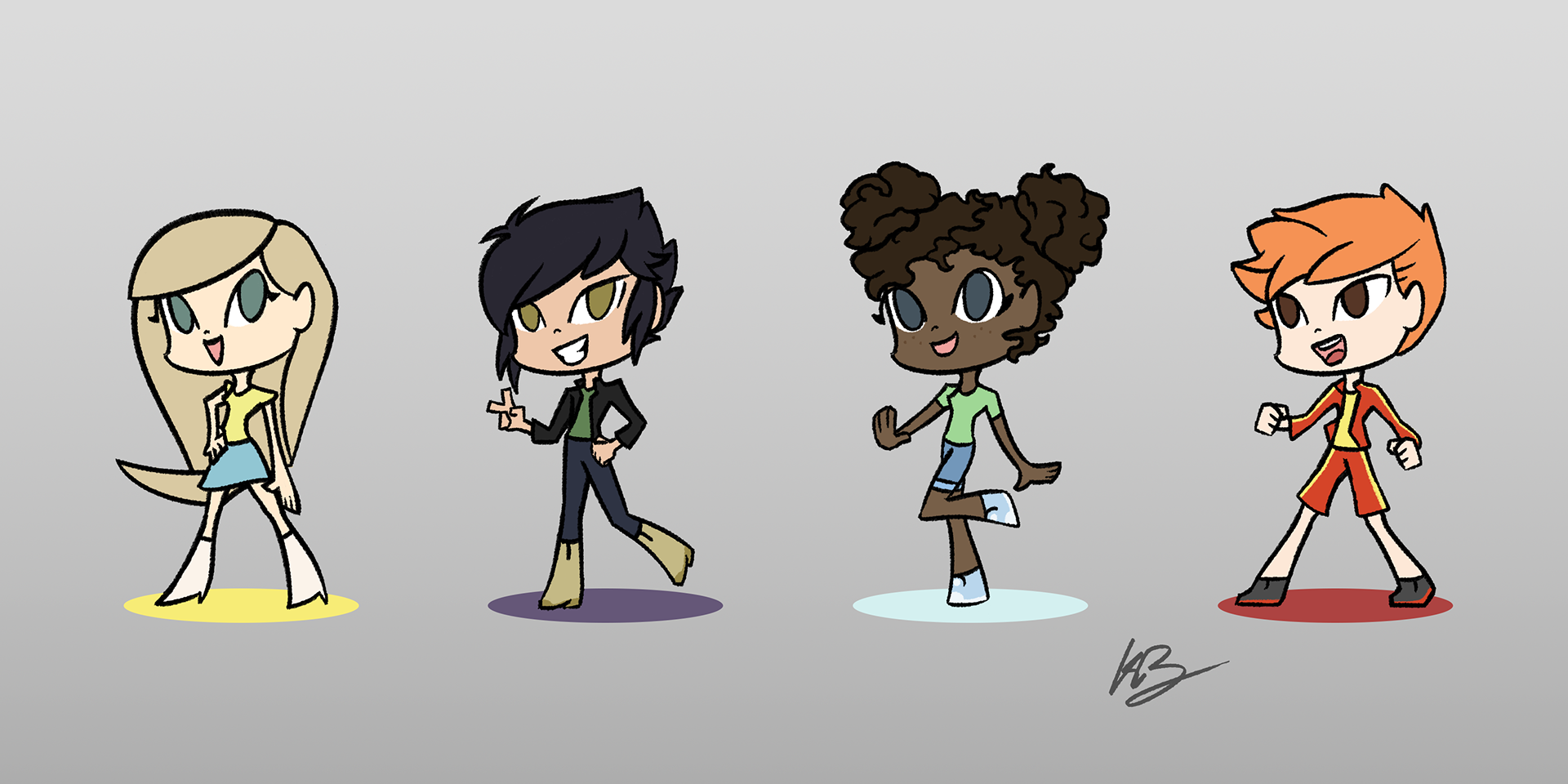 Fun stylized illustrations of some of my original characters. I wanted to mimic the art styles of cartoons from the mid-2000's a little.