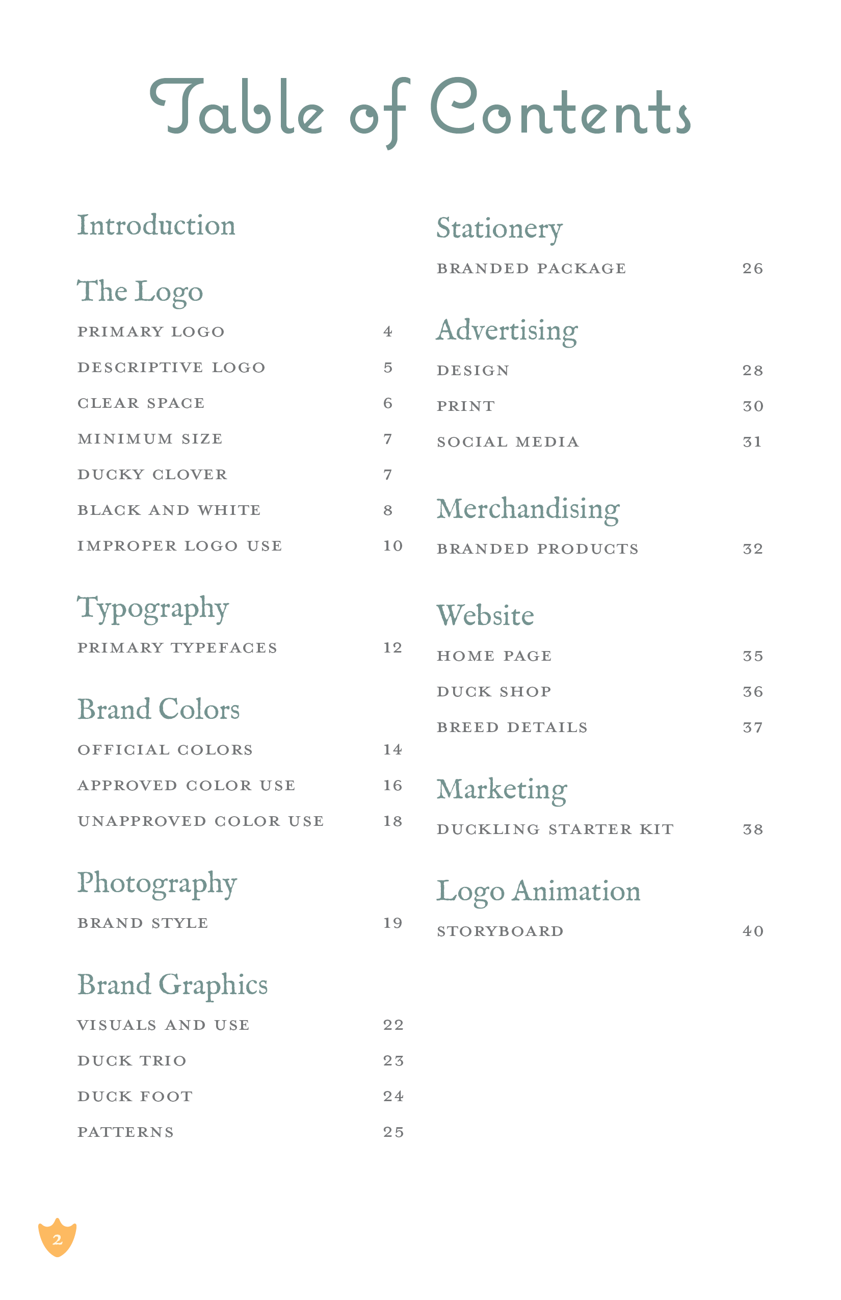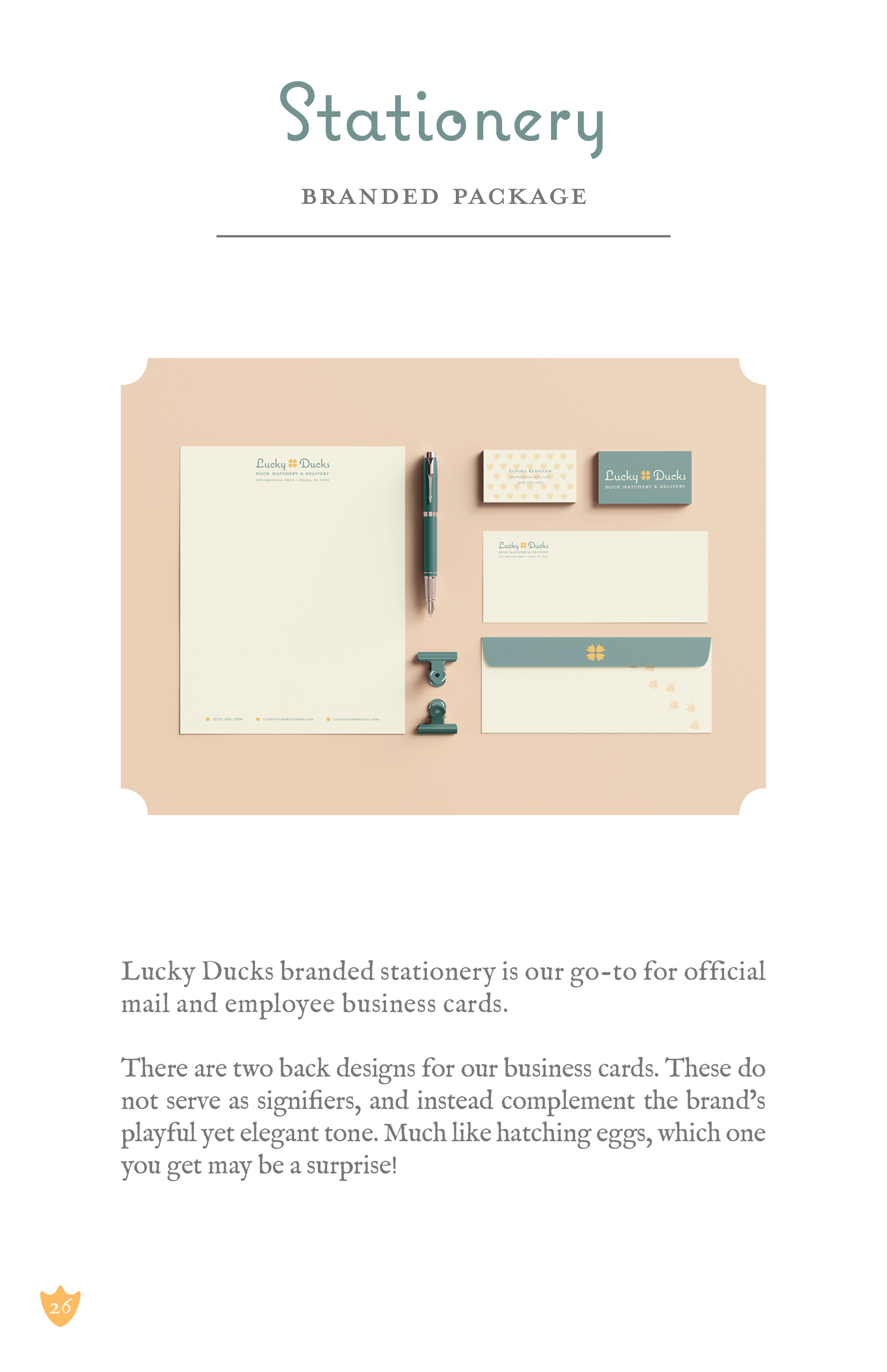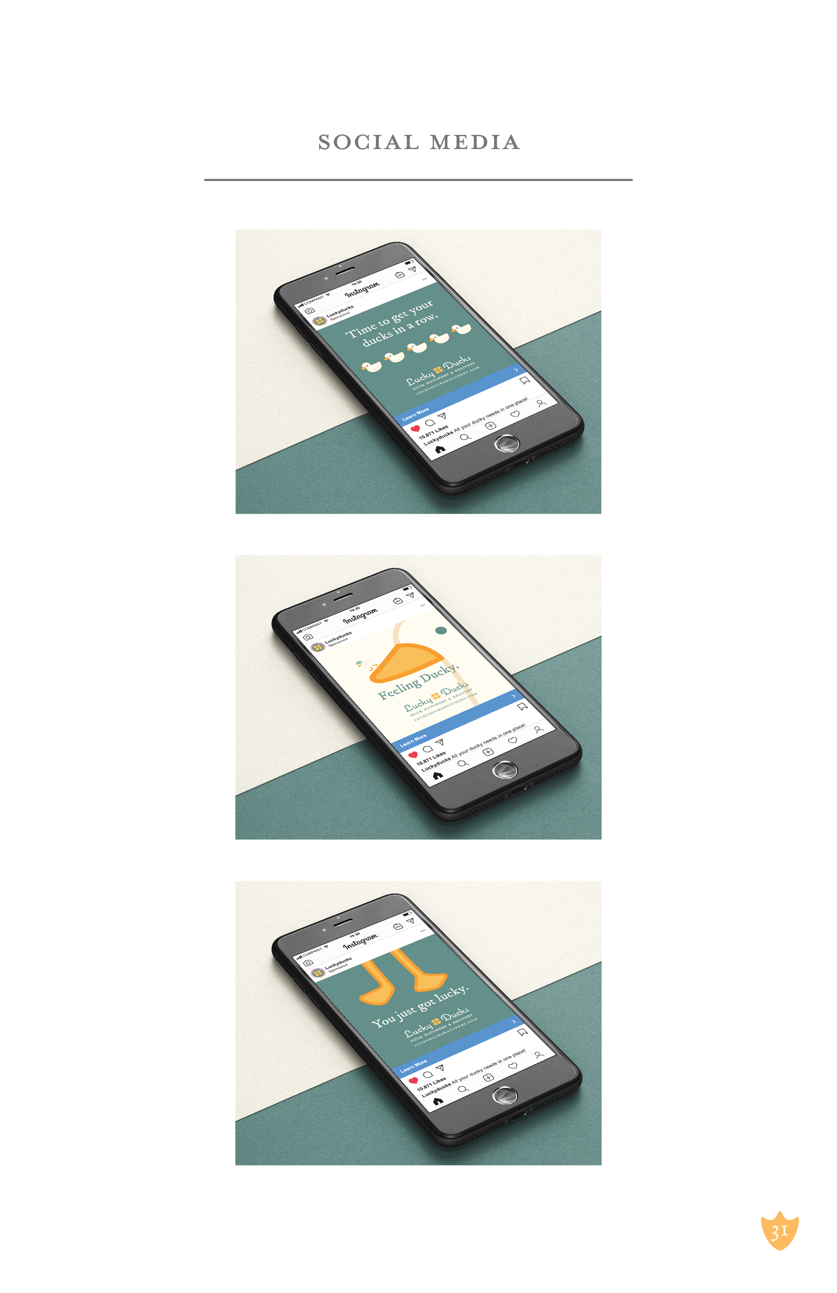 Lucky Ducks was a semester-long project for my Brand Identity class. The brand is fictional, but I had a lot of fun researching ducks and duck-related material to design it!